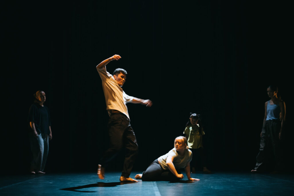 『Beyond!』は、鈴木ユキオとイギリスのインクルーシブダンスStopgap Dance Companyの数年にわたる交流から生まれたプロジェクトです。今年度は、両国でのクリエイションの過程を発表するショーイングを実施しました。また、ゲストパフォーマンスに、神戸を拠点に活動する社会や暮らしのなかに障害を覚える身体のパフォーマーを含む、コンテンポラリーダンスカンパニー「Mi-Mi-Bi(みみび)」を迎えました。